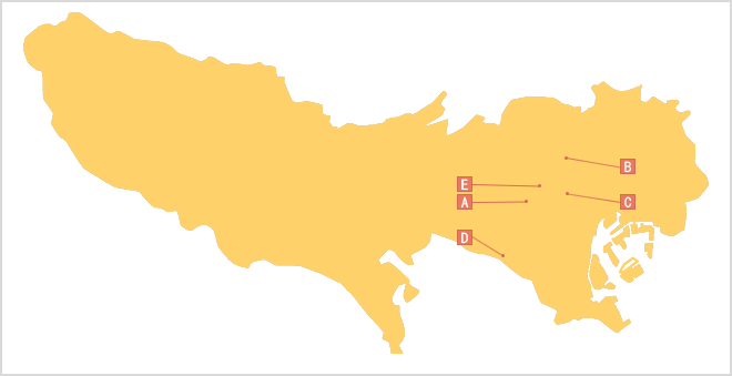 地図上のアルファベットまたは交差点名をクリックすると詳細ページが表示されます。