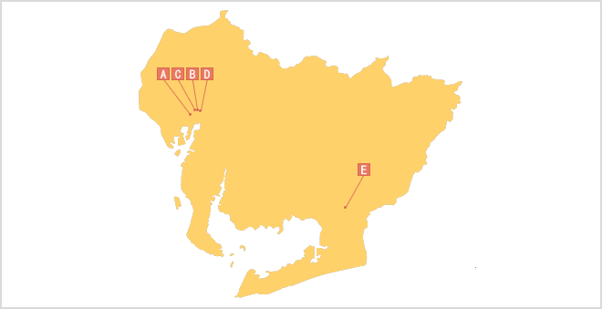 地図上のアルファベットまたは交差点名をクリックすると詳細ページが表示されます。