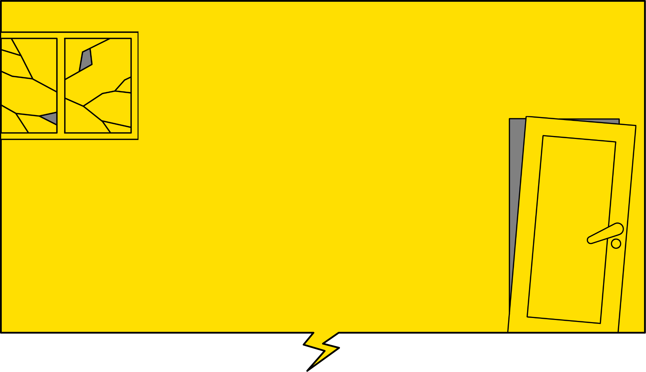 ドアの周りの壁等が大きく破壊するものがかなりあります。変形によりほとんどのドアが開かなくなります。窓ガラスのほとんどが破損、落下します。